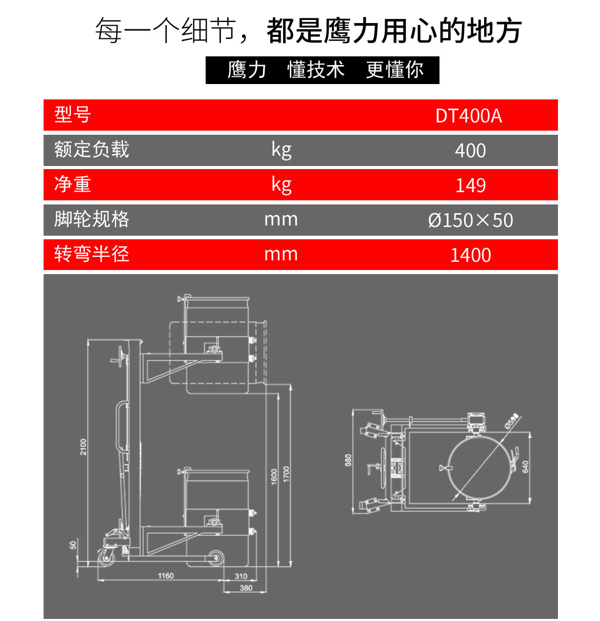 DT400A液壓油桶堆高車