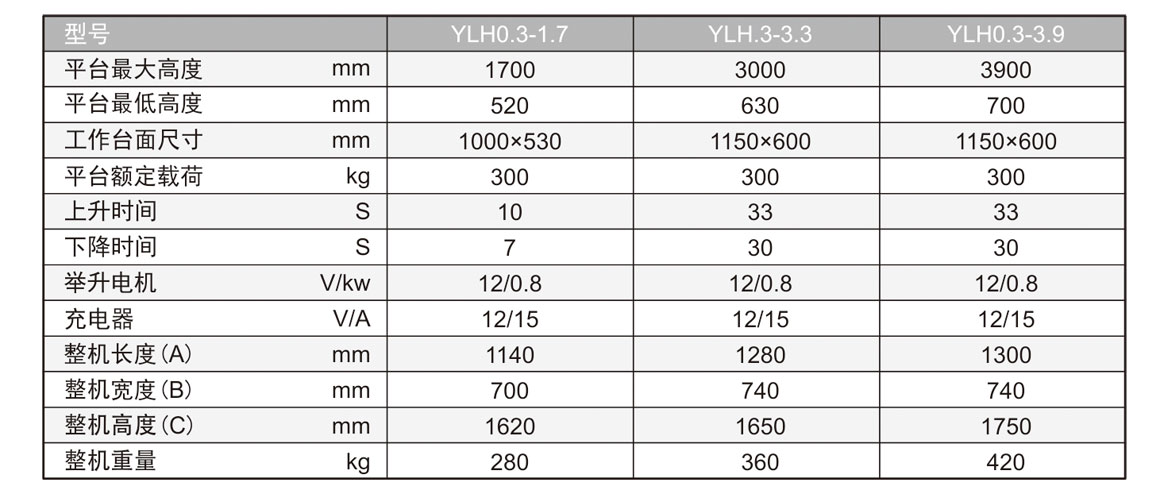 | 平臺最大高度 | mm | 1700 | 3000 | 3900 |